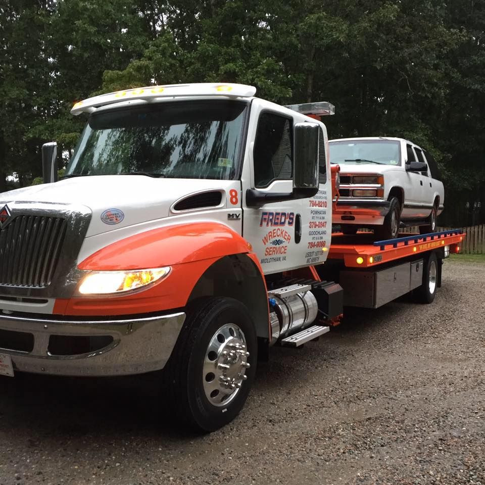 Fred’s Wrecker Service is a fast, friendly and comprehensive towing and recovery company serving Midlothian, Powhatan, Goochland, and beyond. In business since 1985, we specialize in light- to heavy-duty towing, accident recovery, roadside assistance and more, offering all services at the area’s most competitive prices. We offer 24/7 emergency towing and roadside services.